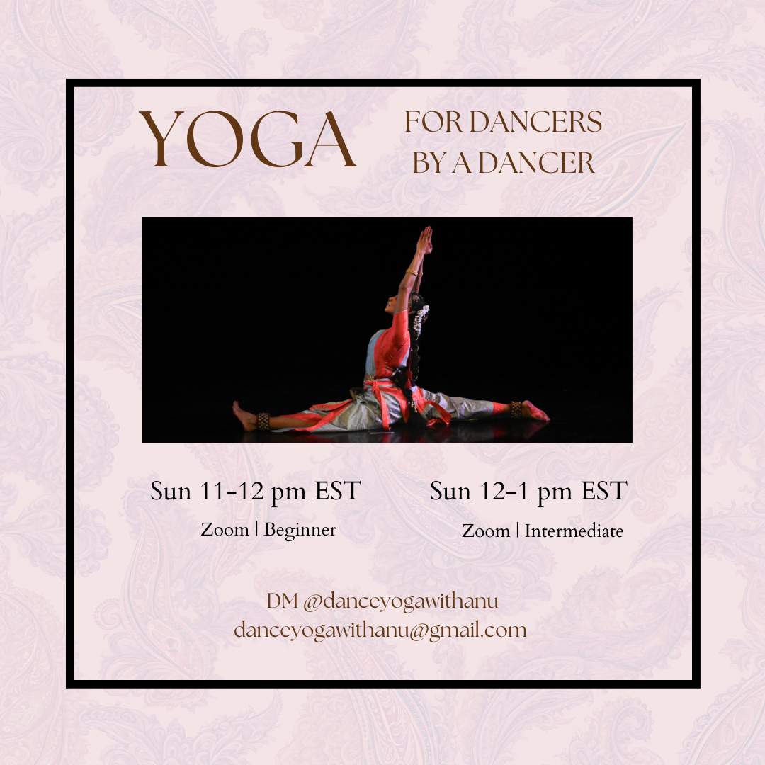 Online ashtanga inspired yoga classes designed for Indian Classical Dancers (Bharatanatyam & Kathak Focus) . Classes will provide physical & mental conditioning, and will focus on building core strength and improving hip and hamstring flexibility.